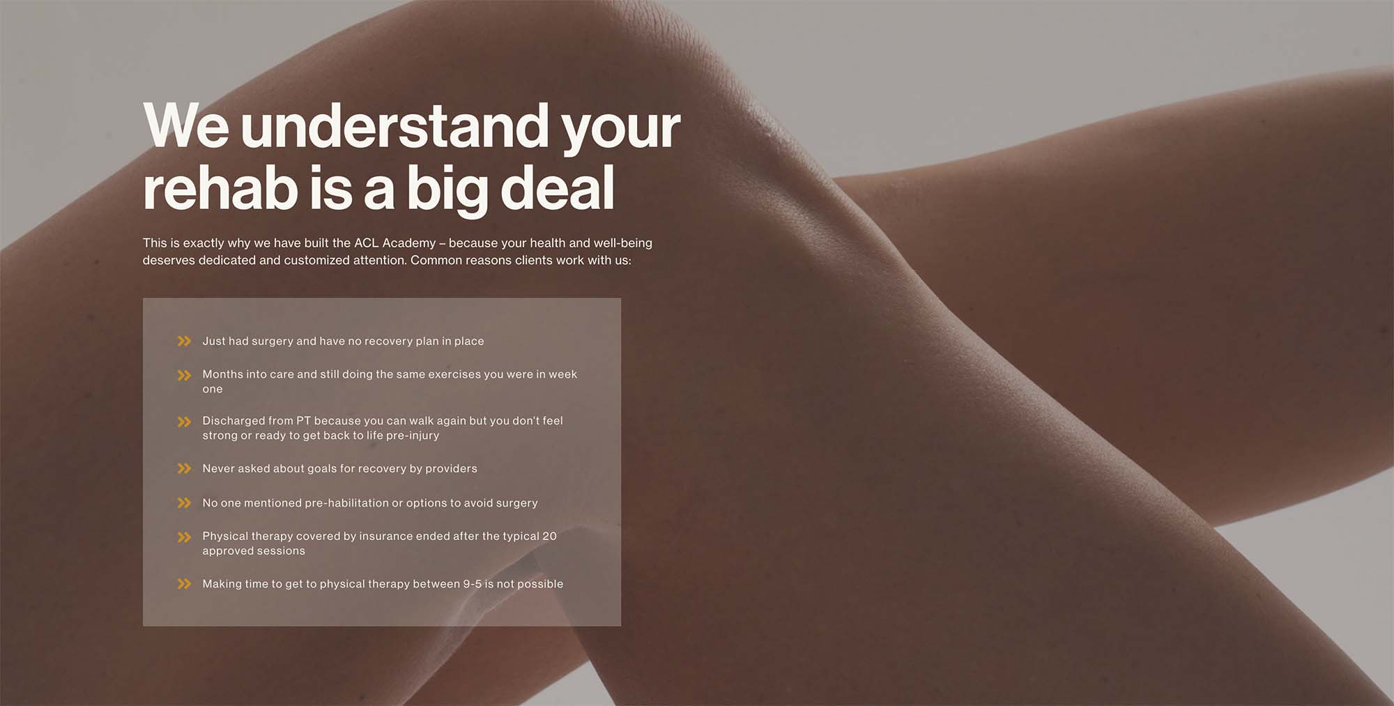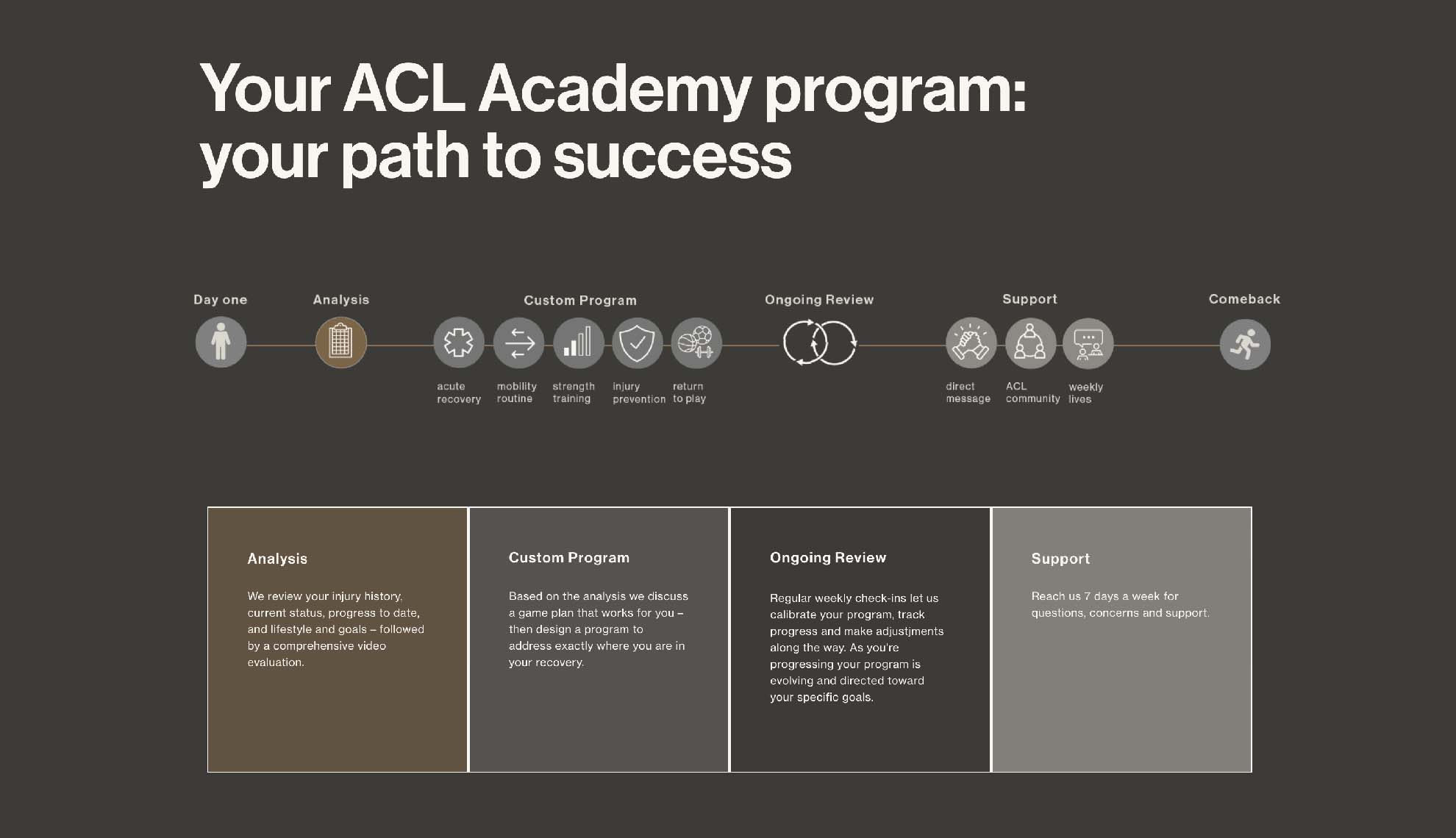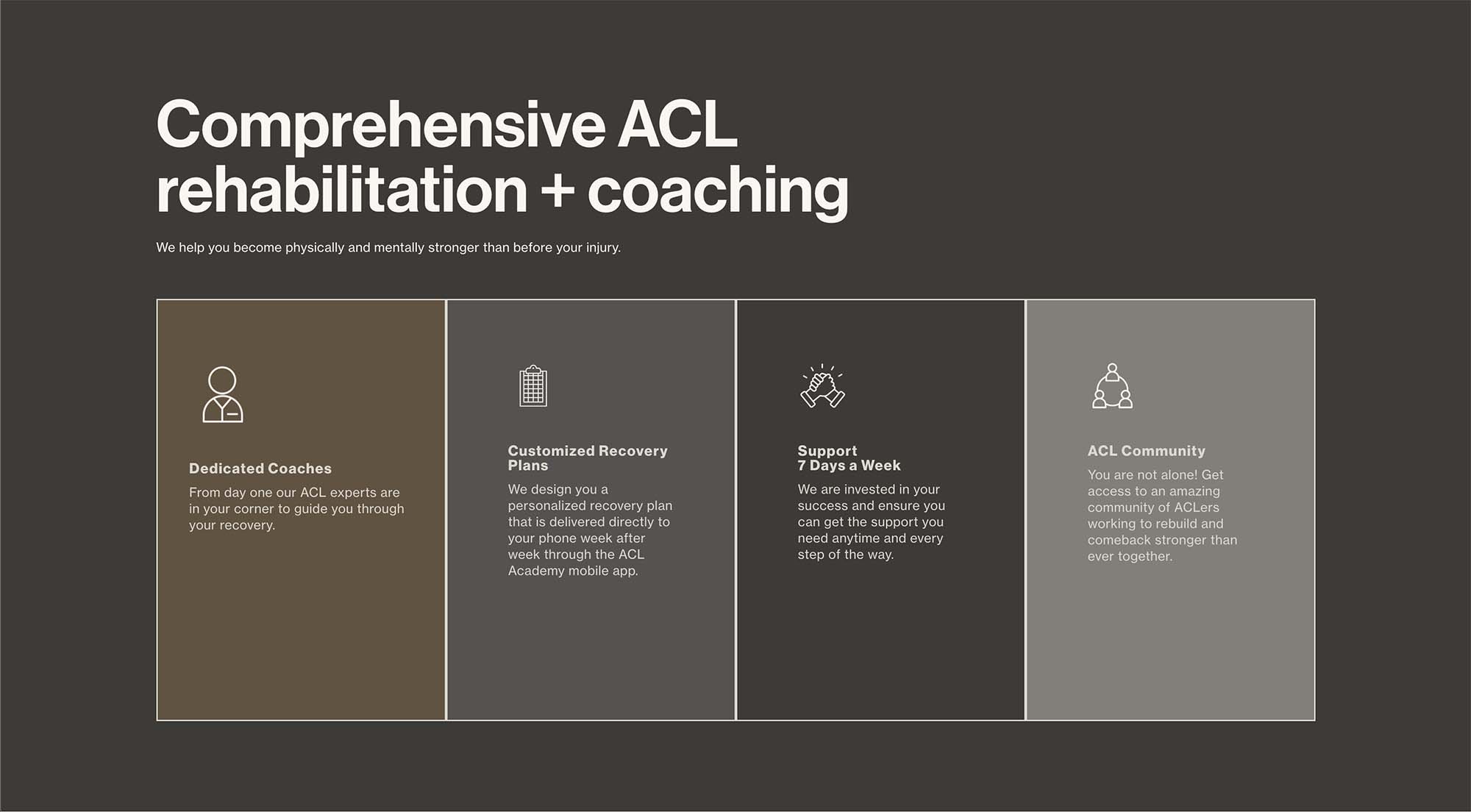 The messaging was carefully crafted to be inclusive of all lifestyles, levels of athleticism, and states of recovery while aiming to communicate the level of care, personalization, and attention that ACL Academy delivers.